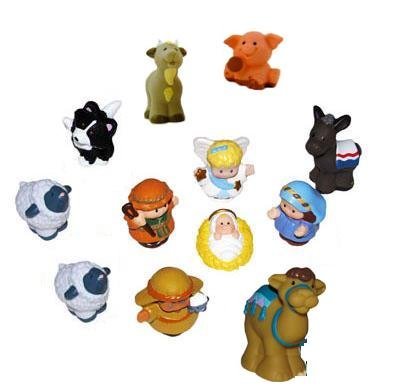 Fisher Price Little People Nativity Scene Replacement Figures BRAND NEW, IN PLASTIC BAG, NOT IN RETAIL BOX. Includes 12 Figures as follows: Angel, Mary, Joseph, Baby Jesus, Shephard, Dog, Two Sheep, Donkey, Camel, Goat, and Pink Pig.Comes packed in a plastic bag, as from manufacturer