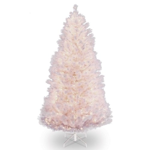 Pre-Lit White Christmas Tree, Slim Profile. Covered with frosted White mini-lights and twinkling Silver glitter, our pre-lit White Christmas tree adds a unique holiday feel to your home. Our pre-lit White Christmas tree has a natural triangular shape and a slim profile so it's ideal for an entryway or small room. Generously lit with 500 Velvet Frosted White mini-lights, and if one mini-light bulb goes out, the rest stay lit. Tree comes with its own sturdy stand, so it s ready to set up, decorate and enjoy. Tree is 7 1/2 ft. tall with a 47" dia. slim silhouette. Gorgeous straight out of the box, your new tree will bring holiday cheer for years to come. Make your Christmas merry and decorating distinctive with our pre-lit White Christmas Tree. Order yours today!