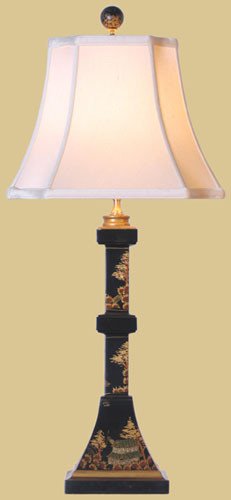 Best Oriental Lamps Sold In the USA - 30" Fine Chinese Black Lacquer Candle Stick Bedside Lamp w/ Landscape Design Feature