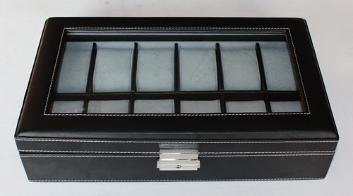ELEGANT 12 PIECE BLACK LEATHERETTE WATCH GLASS TOP DISPLAY CASE Review B004AQE5S8