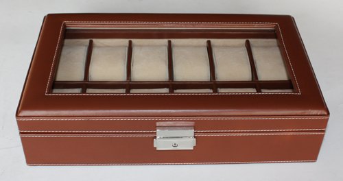 ELEGANT 12 PIECE BROWN LEATHERETTE WATCH GLASS TOP DISPLAY CASE Review B004AQJ94S