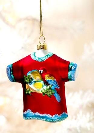 Tropical Tshirt Red Parrot Christmas Ornament Glass Feature