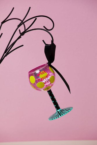 Sassy and unexpected just like you, this stemware glass Christmas ornament is eye-catching. With vivacious personality, it exclaims, "What Happens with Girlfriends, Stays with Girlfriends!" Who said Christmas ornaments had to be just stars and angels? With this ornament, you can decorate your tree in personalized style.